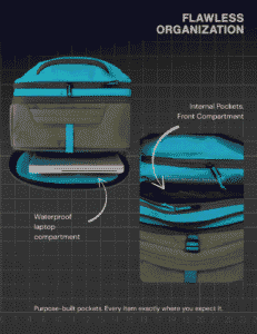 Organizer: Multiple compartments and pockets to keep clothes, tech, documents, and travel essentials neatly separated.
